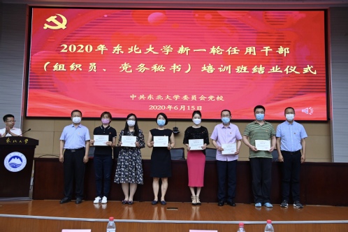 6月15日下午,2020年东北大学新一轮任用干部(组织员、党务秘书)培训班在综合楼822室举行结业仪式,校党委常委、党委组织部部长王辉,党校常务副校长初青松,党校副校长周莉出席结业仪式,党委组织部副部长姜玉原主持结业仪式。
