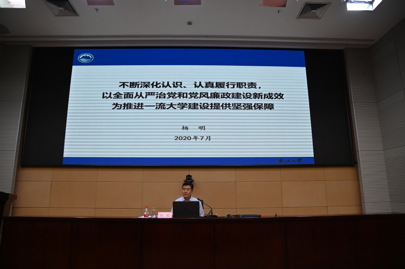7月9日上午,校党委副书记、纪委书记杨明在主楼822室为新一轮提任中层干部讲授“不断深化认识、认真履行职责,以全面从严治党和党风廉政建设新成效为推进一流大学建设提供坚强保障”专题课程。党校、组织部相关负责人参加活动。