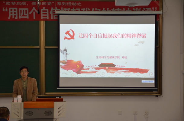 11月12日,生命科学与健康学院党委党校举办书记讲党课专题教育活动,生命科学与健康学院党委书记、党校校长郑虹以“让四个自信挺起我们的精神脊梁”为主题讲授了一堂生动的党课,生命科学与健康学院全体师生党员聆听了本次党课教育。