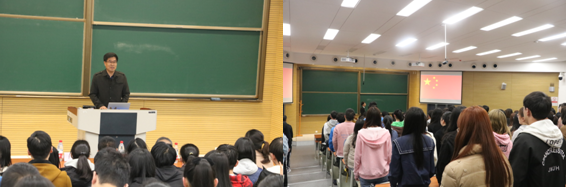 初青松为积极分子上第一堂党课,通过对南湖红船、遵义会议、南方谈话等历史故事的回顾,结合当今时代背景和时事话题,为同学们讲述了马克思列宁主义、毛泽东思想、邓小平理论、“三个代表”重要思想、科学发展观以及习近平新时代中国特色社会主义思想的理论发展,希望同学们在未来学习和生活中可以坚定理想信念。