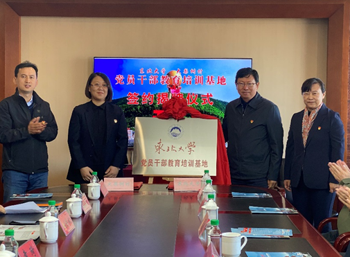 孙雷、袁琦、周莉、毛正新共同为东北大学党员干部教育培训基地揭牌。