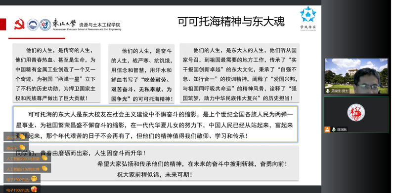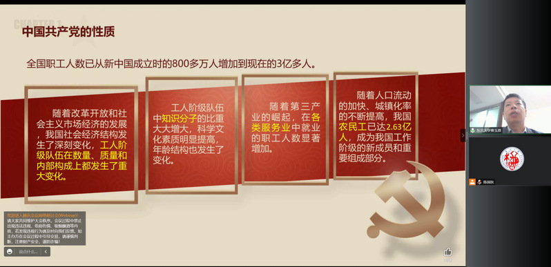 本期培训班围绕“党的指导思想”、“党的发展历程”、“党的性质、最高理想和根本宗旨”、“端正入党动机”、“共产党员的条件、权利和义务”、“入党履行的程序和手续”六个主题,以讲座报告、个人自学、观看视频等方式相结合进行。初青松、艾国生、姜玉原、严立宁、王海霞、陈国秋六位老师分别对培训主题进行了讲座报告,同学们更加深入地掌握了党的基本知识和理论,了解到可可托海的东大人不懈奋斗的精神,端正入党动机,深刻认识到新时代新征程一名入党积极分子所应具备的历史责任,表示要以更加饱满的热情投入到学习和工作中,在成为共产党员的拼搏之路上奋勇向前。