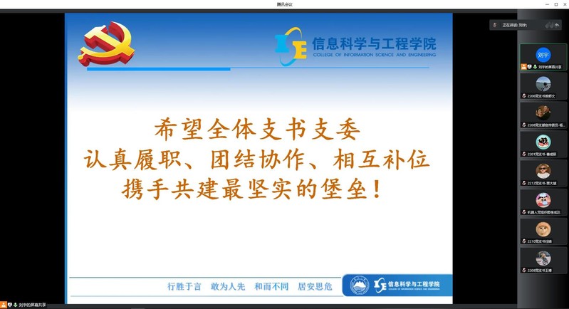 10月22日,信息学院党委党校开展“信仰课堂”系列教育活动之学生党支部书记及支部委员专题培训,学院党委副书记、副院长、党校副校长亓红强参加培训会议,会议由学院党委组织员刘宇主持,2022级硕士生党支部书记及支部委员全体参会。