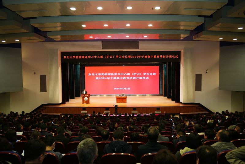 4月2日下午,东北大学召开党委理论学习中心组(扩大)学习会议暨2024年干部集中教育培训开班仪式。校领导班子成员、全体中层干部、校机关正科级干部、党委组织员、党务秘书、教师党支部书记代表、学生工作干部和学生代表,及学校2024年五类培训班学员代表等参加会议。会议在南湖校区汉卿会堂蔡冠深报告厅设主会场,在秦皇岛分校设分会场。校长冯夏庭主持会议。