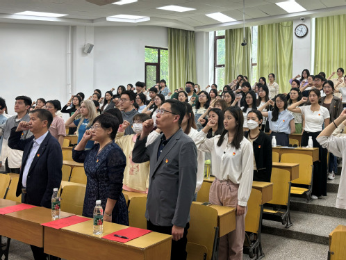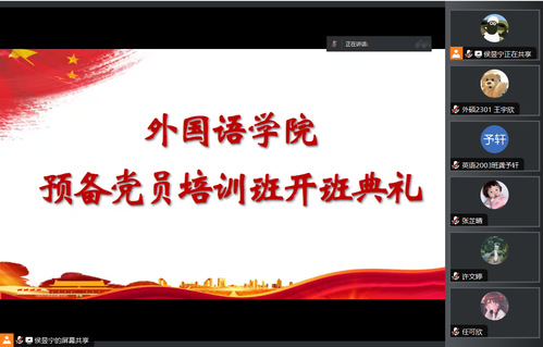5月13日中午,外国语学院党委党校第七期预备党员培训班开班仪式在何世礼教学馆105室举行。东北大学党校副校长周莉,外国语学院党委书记、党校校长张满胜,党委副书记兼副院长、党校副校长严志刚出席开班仪式。来自外国语学院近200名正式党员和预备党员线上线下同步参加仪式。本次开班仪式由外国语学院党委组织员鄂立华主持。