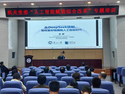 培训围绕“通用人工智能现状”“大语言模型技术”“DeepSeek简介”“大语言模型应用”以及“问题和思考”等方面展开,深入系统介绍了以Deepseek为代表的人工智能的发展历程、基本知识、典型应用和专业建议,结合当下热点话题和机关工作实际,对如何提升智能办公、信息收集和科学决策等能力进行针对性辅导,希望机关干部职工进一步顺应技术发展、拓宽工作视野、打破思维限制、强化深度学习,以人工智能赋能综合改革和部门工作。