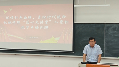 为深入学习贯彻习近平新时代中国特色社会主义思想,切实加强学院入党积极分子培养教育工作,9月22日上午,机械学院“匠心大讲堂”入党积极分子培训班在教学馆210教室正式开班。东北大学党委党校副校长周莉,机械学院党委书记郝建山,学院党委副书记兼副院长孙坤出席本次开班仪式。